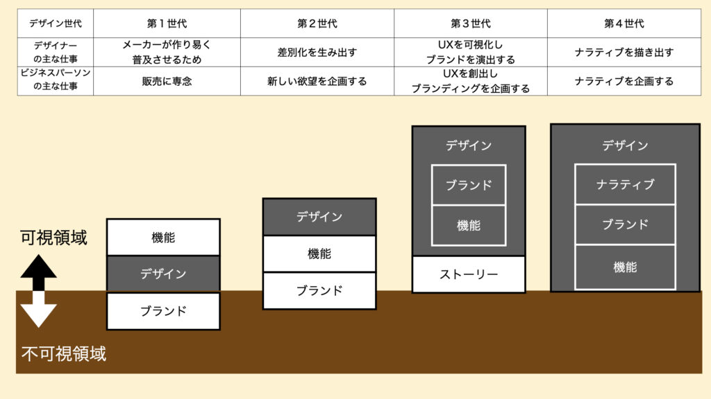 このナラティブの可視化が求められているのがデザインの現在地である第4世代です。